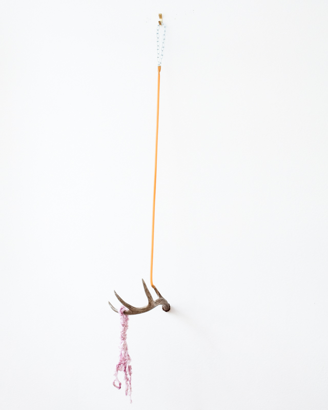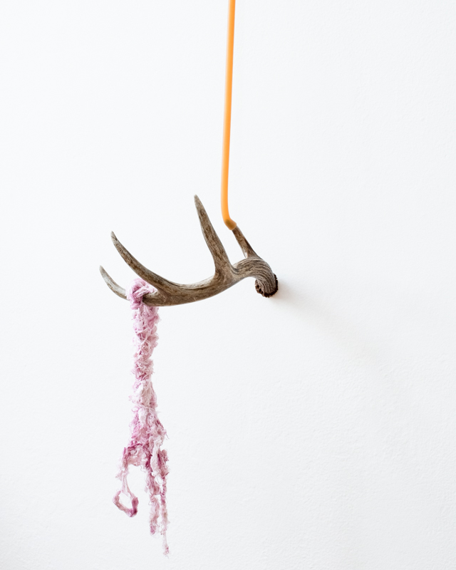 White-tail deer antler, latex tubing, cotton tow dyed with hibiscus,